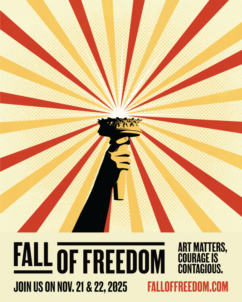 Fall of Freedom is an urgent call to artists and institutions across the country to unite against rising authoritarianism and the erosion of free expression. Beginning November 21–22, 2025, galleries, museums, theaters, and community spaces nationwide will activate exhibitions and performances that channel the urgency of this political moment and celebrate the cultures, identities, and voices that shape democracy.